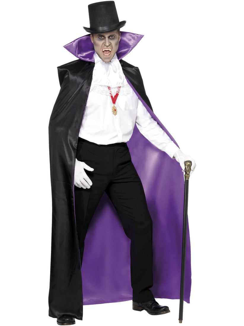 Count reversible purple and black cape with large collar. One size.