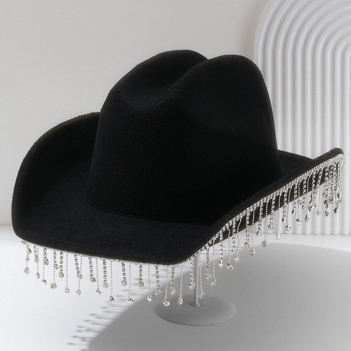 Luxury Cowboy Hat with Dangling Chain Diamanté Stones.
