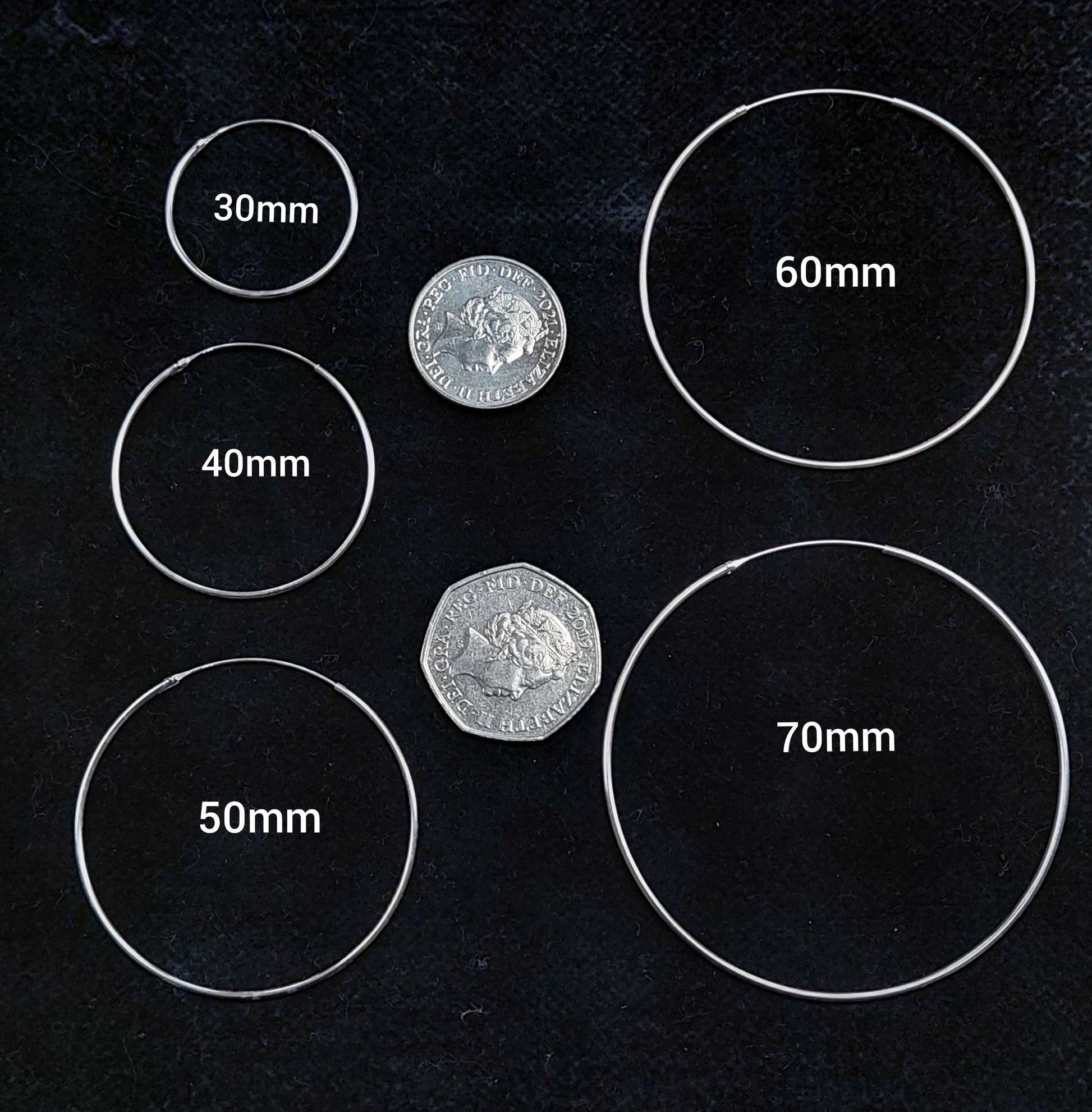 Fine hollow Sterling silver hoops 1.2mm thickness.